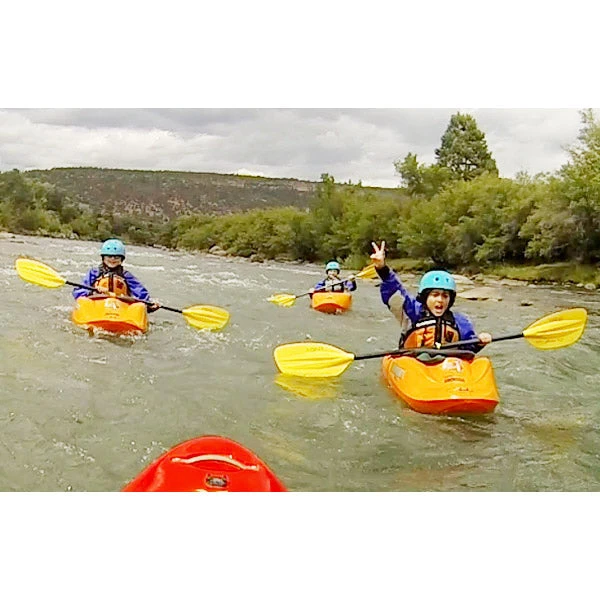 After the first few days of learning the basics we can spend time on the Animas! We will start with a flatter section of the river where we can get more comfortable in our boats, and we can start introducing some river maneuvers. As the week progresses, we will start running some small rapids, and learning how to control our kayaks in whitewater. By the end of the week, we will have covered all of the basics of kayaking, and kids will have solid fundamentals to build on. This class will include all gear, transportation and instruction.