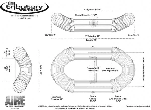Tributary rafts are constructed using a two-layer system; a PVC outer skin and internal urethane bladders for superior air retention, abrasion resistance and durability. They are also easier to repair and maintain. All Tributary self-bailing rafts are equipped with two removable thwarts and a pre-laced self bailing floor. The Tributary line of rafts and kayaks offers tremendous value for paddlers on a budget. Featuring the same legendary air retention features of the US-made AIRE line, they’re backed with a solid 5-year warranty.